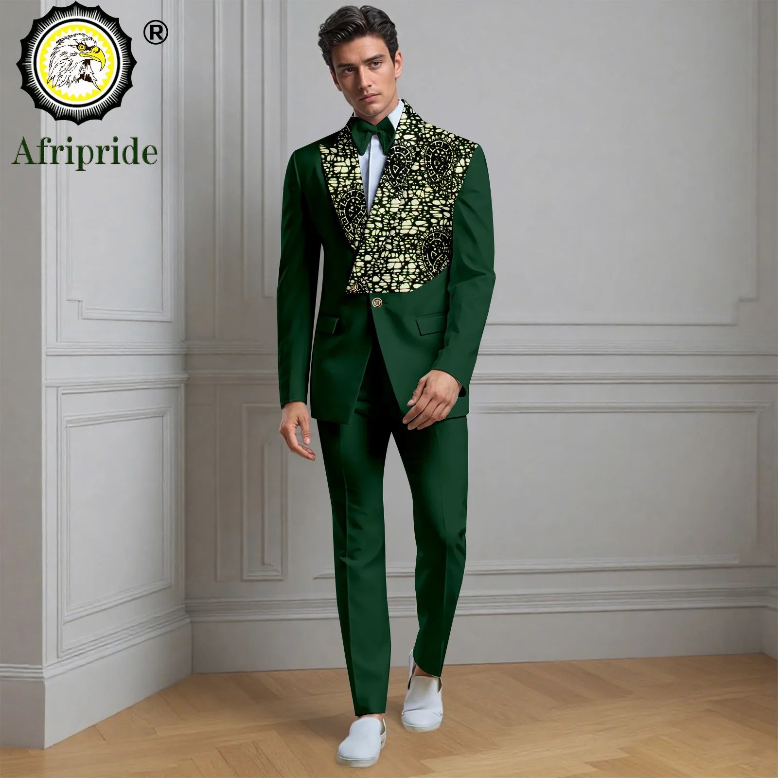 Costumes d'affaires Africain pour hommes Homme, 2 pièces Blazer imprimé à deux boutons avec nœud papillon et pantalon